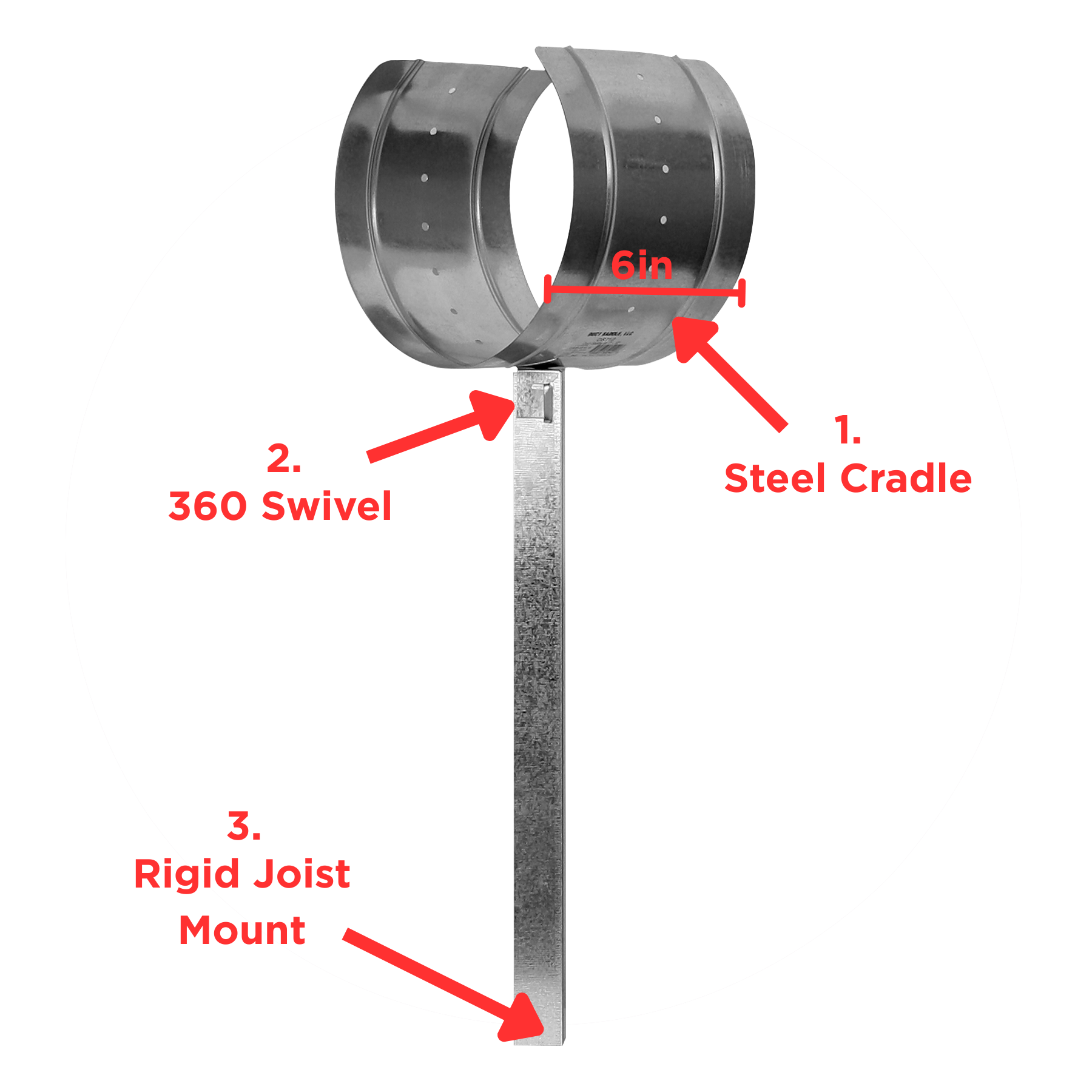 Unlike swaying straps, our solid steel stem mounts directly to the framing. This allows you to pull the duct tight for perfect tension and static pressure.